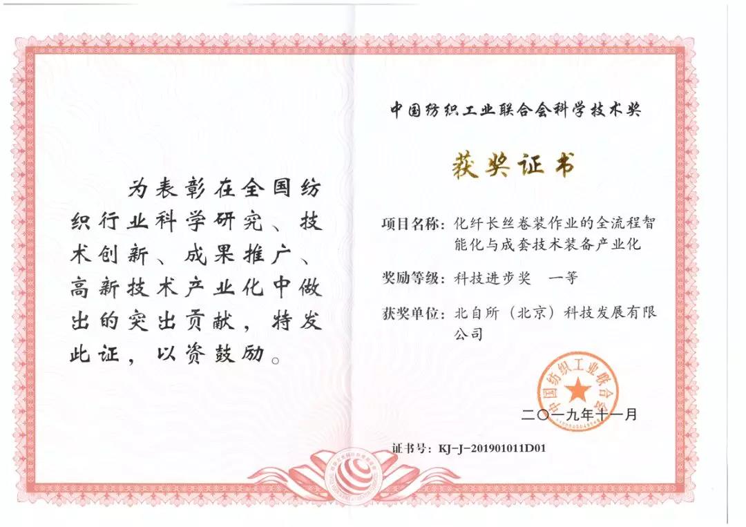 會上,北自科技主導研發的“化纖長絲卷裝作業的全流程智能化與成套技術裝備產業化”項目在多個評選項目中脫穎而出,榮獲“科技進步獎·一等獎”的殊榮。